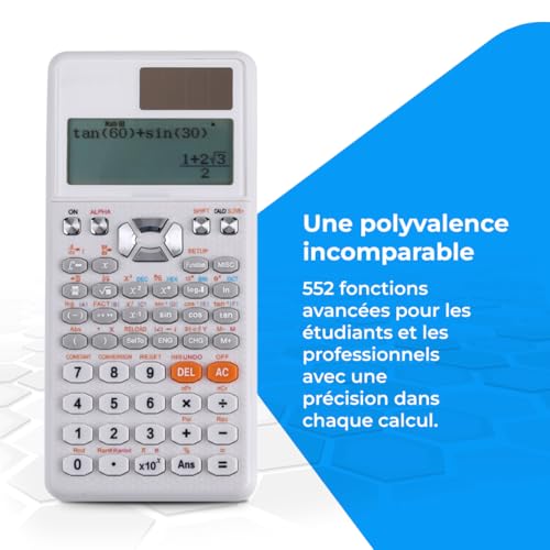- Calculatrice scientifique NK : polyvalence inégalée : la calculatrice scientifique de la marque NK est un instrument exceptionnel qui dispose de 552 fonctions, allant des opérations de base aux calculs avancés. C’est l’outil idéal pour les étudiants, les ingénieurs et les professionnels qui ont besoin de précision et de polyvalence dans leurs calculs quotidiens.