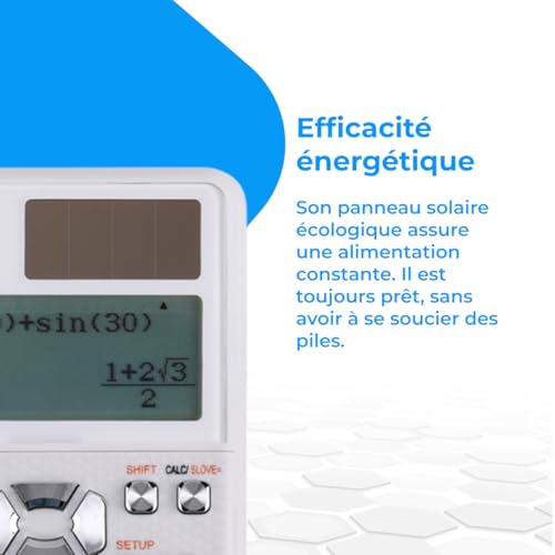 - Efficacité énergétique avec panneau solaire : le panneau solaire de la calculatrice scientifique NK fournit une source d’énergie efficace et écologique. Cette fonctionnalité garantit que votre calculatrice est toujours prête à l’emploi, même dans les situations où les piles pourraient s’épuiser, offrant une solution fiable et durable.